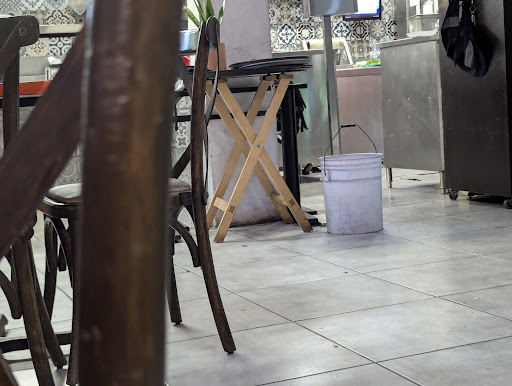 ¡CUIDADO! Contaminación cruzada por todos lados, espero solo sea cosa de confusión, pero el mesero se metió creo Yo a limpiar el baño con un trapo azul mismo con el que antes ya había limpiado mesas de servicio, saliendo del baño como que lo lava y sigue limpiando servilleteros y mesas. Limpian el asador donde está el tronco de la carne al pastor sin quitar el mismo tronco de carne sobrante.