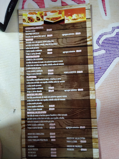 Read moreHace mucho tiempo que no me tocaba una mala experiencia en una taquería. Es carisimo, las porciones son muy pequeñas y a mi en lo personal se me hizo mala la comida! Una gordita que por lo general en una cenaduria la encuentras en $15... Aquí cuesta $48, creí que iba a estar grande por el precio.... Pero cuando la mesera me preguntó , ¿solo una? Empecé a sospechar. Cuando llegó mi platillo efectivamente era una pequeña gordita, me dieron cubiertos y ni con el cuchillo la podía partir, estaba muy dura! En fin , primera y última vez que llegó a esta taquería, espero les sirva la reseña para que piensen si van a llegar a cenar aquí o preferible buscar otra taquería , que por lo regular hay varias...