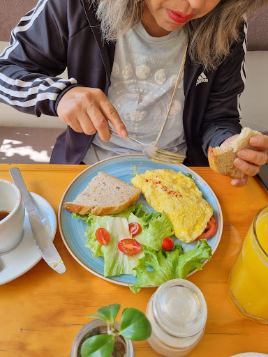 Fui a desayunar junto a mi esposa y pedimos un café y un omelette con espinaca, jitomate y queso.