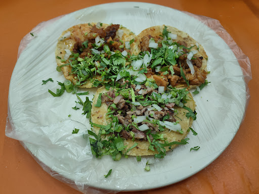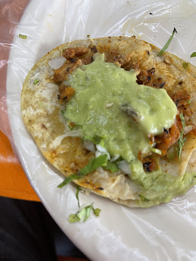 Los taquitos estaban muy ricos de sabor, me gustó el de pastor, aunque si son de tamaño mini. Me gustó que del pastor te llevan taco extra. Las aguas están deliciosas, buen precio y tamaño. No me gusta que le ponen bolsa de plástico al plato! Luego creen que eso los previene de lavar y el plato estaba puerquísimo por abajo, es un riesgo de higiene! Además, la bolsa de plástico al recibir calor de la comida suelta químicos y microplásticos en tu comida porque no están hechas para eso, y contaminan mucho por cada bolsa de cada platito. Tampoco me gusta que le ponen popotes a las aguas porque contaminan pero yo le pedí mi vaso sin popote y si me hizo caso (traía mis propios popotes reusables). El servicio dejó a desear porque el chavo andaba muy distraído, nos atendieron rápido al llegar y tomar la orden pero el resto de la noche era difícil que fuera para pedidos adicionales. El lugar es sencillo, decente pero les falta limpieza (en el piso, en las mesas...