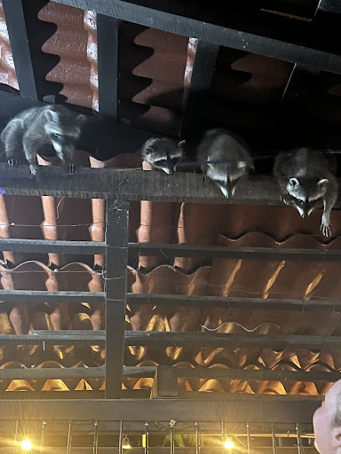 Read moreThis place is so fun! Here's the tech: Always put your dish in front of you more spaced than you normally would (if you leave it sideways or near the edge the racoons will steal it!), leave small pieces of meat near the edge of the table to watch them grab it, and if lots of them start grouping around you just do a loud double clap and they will scatter so you can return to feed them one by one! Also remember, don't leave keys, phones or any important stuff near the edge of the table. If you start getting scared of them you can always sit at the bar, it's more difficult for them to get up there. Also, as a big plus, the food is...