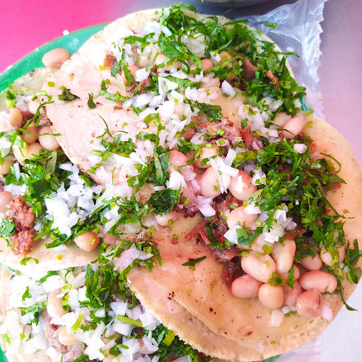 Probé los tacos de carne asada con chorizo y los de tripa, los dos muy buenos, son tacos grandes en tortilla normal y bien servidos.