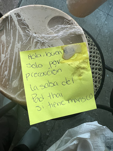 Read moreI have a shellfish allergy and in my online order I mentioned that and if there is any seafood in anything I order, to please remove it. Why did they write in a post it note that the pad Thai sauce had seafood in it, but not remove it from my order. Who is going to eat it? Not me because I have an allergy. I’m grateful that they told me, but the better thing would have been to refund me. The rest of my order was pretty bland and underwhelming. I won’t be ordering from this...