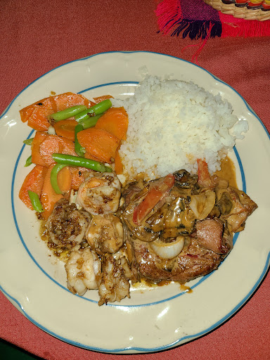 Always a wonderful dining experience at Tio Domingo's. The food, service and beautiful garden setting are all wonderful! They make the best Guacamole in Mexico. Last evening we also enjoyed the Filet of Beef in a Red Wine Sauce with Bacon and Onions, Steamed Vegetables and Creamy Mashed Potatoes, and the Garlic Shrimp with Rice and Steamed Vegetables. For cocktails we enjoyed Margaritas and Jack & Coke. After dinner drinks and coffees, as well as desserts, are always a special treat! Prepared tableside, the Bananas Flambe and Coffee with Tequila and Whipped Cream are truly amazing...