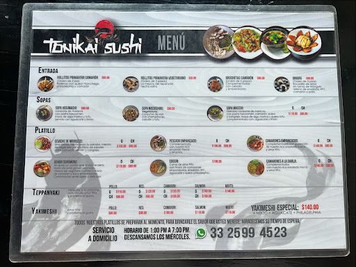 Read moreEl lugar está agradable, limpio, con suficientes mesas, no cuenta con estacionamiento propio pero te puedes estar afuera de o enfrente de. Tiene un menú amplio, están ricos los sushis, tienen variedad de salsas. Considero que Los...