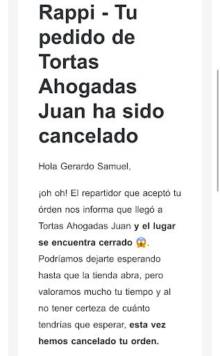 Pésimo servicio 👎👎👎😡 el día de hoy hice un pedido aproximadamente alas 2:20 y nunca llego estuve marcando y me dijeron k ta estaba en ruta marque como 3 veces y me dijeron k por ser fin de semana habían muchos pedidos,cosa k yo entiendo, pero ala hora de que uno hace el pedido deberían de mencionar eso k los pedidos tardarán aprox. cierto tiempo y ya es decisión de uno aceptar o ver otra opción. Pero en ningún momento me comentaron eso hasta que les estuve mark y mark y de todos modos de nada sirvió por k nunca...