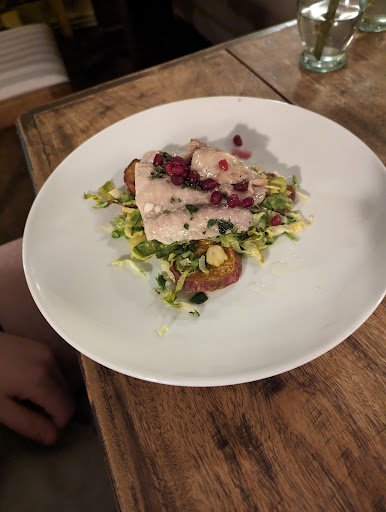 Somehow in my 5 years of living less than 3 blocks away, Sunday was my first visit here! Some have shared they find it overrated or pricey, I did not find either of those things to be the case for me. I very much enjoyed my experience from the warm greeting upon arrival to the beautiful space that embraces the trees they built around as part of the decor & lovely ambiance. Service was excellent & the server was quite charming & a little funny even! When we asked about what seemed like a slightly paired down menu the server shared w/us that w/the name of the restaurant translating into 3 plates, what they do is change the menu every 3 weeks w/each category in the menu having...3 plates! I found this to be a a fun, creative way to be on brand & keep things interesting to keep people coming back! Cocktails: I didn't take a photo of that menu, so I don't have the specifics, but mine, pictured, was vodka based w/kiwi & chartreuse & my husband's was tequila based w/hibiscus & berries. Both were refreshing & delightful. All the speciality cocktails I do recall were $210 MXN, well worth it for the quality of the ingredients & craftsmanship. Starters: We shared the Smoked Trout Crostini which is house made bread with a generous portion of the smoked trout, avocado & roasted peppers. This was a great balance of topping to bread & was still light & refreshing. We also enjoyed the Crispy Squash Blossoms, a favorite of mine. Very lightly fried & filled to perfection & served on top of a little of the house red sauce & pesto both of which I tasted on their own & enjoyed. Entrees: Again we shared, having from the Primi section the house made Pappardelle served with a generous portion of short rib & surprising, but beautiful touch was the horseradish, akin to how you would have it with a prime rib & it paired wonderfully w/the rest of the dish! From the Secondi section we very much enjoyed the Pork & Beef Meatballs, again served w/house made pasta, prosciutto & rosemary. My husband found the meatballs to be a little on the soft side texturally, but I found them to be beautifully tender & moist so I liked them the way they were & we both agreed the flavor of them as well as the red sauce was great. Wine: I have been working on exploring Mexican wines more so I had the Kumeey Xecueé from Valle de Guadalupe in Baja. This was a delightful red blend that paired nicely w/both the short rib & the meatballs. Dessert: We did skip dessert as nothing here really stood out to either of us & I had been craving a cookie ice cream sandwich from my favorite spot, Paleteria Y Neveria La MIchoacana just one block away. There I had strawberry ice cream sandwiched between two perfect chocolate chip cookies. If you haven't tried this spot, it's a small little Mom & Pop shop that I encourage...