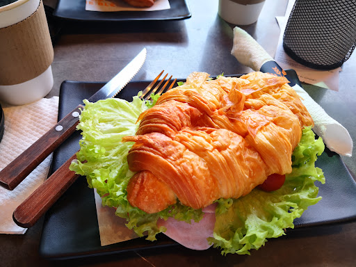 He comprado pan para llevar varias veces y te lo entregan en su cajita con sus sellos y todo lo que le da un toque de excelente gusto. Sin embargo el día de hoy probé desayunar un croissant 🥐 de jamón con lechuga y otro de jamón serrano y la verdad fueron de lo más ordinarios. 1 rebanada de jamón, 2 o 3 mitades de jitomate y una hoja de lechuga sin ningún aderezo que resaltará los sabores. Pudieran tener algún chile aceite o aderezo para ponerle porque fueron muy insípidos.