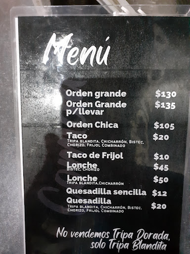 Read moreLa mera verdad he probado tripas en muchos lugares que también salen en tiktok y todo el rollo pero en verdad estás tripitas son la mera sabrosura !! El lugar para empezar super cómodo nada apretado como algunos otros lugares o sentados en la calle , los meseros y toda la gente que trabaja ahí super atentos en todo momento . Dejando en claro que aquí solo venden su tripita blandita, para ser honestos no me sentí seguro de querer comerla por qué me agrada algo doraditas pero pues corrí el riesgo . Y vaya sorpresa me lleve unas tripitas super blanditas , con un sabor delicioso su salsita y su chile son unos de sus protagonista en cuanto a sabor, pero el mejor toque es ese chicharronsito que le ponen a tu orden ... Wooo un toque delicioso haciendo una combinación de textura y sabor fue algo verdaderamente delicioso tiene que probarlas . Solo comimos tripitas pero tiene de algunos otros , si van no dejen de probar sus tripitas garantía de satisfacción! Precio $380 por pareja...
