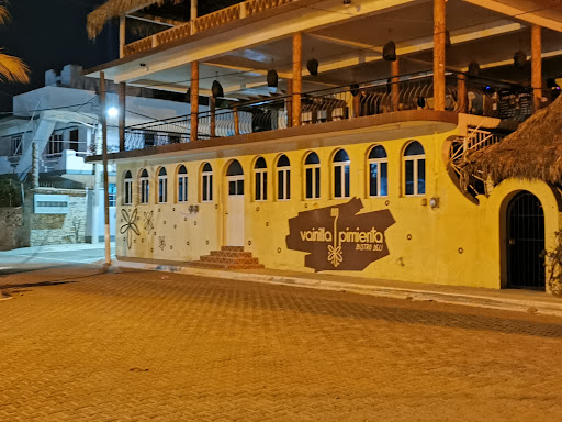 How nice it was to walk up from the dusty streets of Melaque to an elegant , romantic , cool, open aire Vainilla Pimienta Bistro Deli. This is not a Deli in the New York sense, (no waiting at a counter to be served), but it is a Bistro, with fresh individually prepared plates prepared by 2 trained chefs served at your table. The menu is not Mexican, but a list of international favorites. Delicious. We returned the next night for more. Yum.