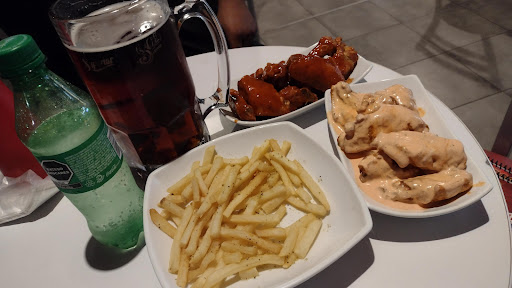 Read moreFui con unos amigos para una convivencia tranquila y resultĂł ser el peor servio desde que entras. Para empezar se ve que no hacen limpieza general que solo lo hacen por encima ya que una amiga dice haber visto un (ratoncito) corriendo para la cocina. En la entrega de nuestros alimentos se tardaron mucho y un mesero con bigote y algo chaparro fue muy grosero ya que al comentarle que estaba nuestra comida "algo cruda" imposible comerla se molestĂł mucho y nos ignoro, pero lo peor no fue eso, si no que al observarlo bien tenĂa un olor fĂ©tido y unas patas de cucaracha entre el adobo de las alitas. Y el ruido de la musica era tan fuerte que uno tenĂa que gritar, era molesto, muy incĂłmodo algo estresante ya que repetĂan mucho las canciones. Los baños estan muy sucios y huele...