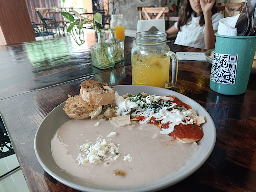 Read moreMuy decepcionante. Pedí unos chilaquiles en salsa poblana que sabían a crema grasosa, sin sabor a poblano, sin sal, todo frío. El jugo verde, era agua con 1 cucharada de gabazo verde mal molido 👎🏻, el platillo venia acompañado de unas rebanadas de bolillo untado con más crema y como puesto a la plancha, todo frio, grasoso y chicloso. Había leído buenos reviews, tal vez fue demasiada mi expectativa. Lo único rescatable fue un pan francés que tenía una mermelada de frutos rojos muy rica. El servicio amable, pero el mesero medio distraído, nos sentamos en la terraza posterior y solo fue cuando llevo los platos a la mesa, tuve que levantarme a buscarlo para pedir la cuenta porque ya nadie se asomo de nuevo. La relación precio-platillos esta elevada para el estándar de calidad que...