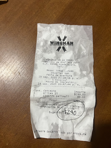 Hablamos y pedimos para pasar por el llegamos y al momento de pagar sin mostrarnos ticket nos dijo son $240 y ya íbamos de salida cuando caímos en cuenta que no era lo que costaba el paquete de alitas y nos regresamos por el ticket y ya nos habían cobrado servicio sin preguntar y en un pedido para llevar ! Además las alitas tenían dos pesos de salsas y las de abajo casi...