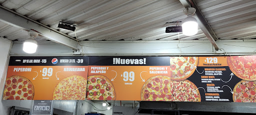 Es una gran experiencia no esperaba que la pizza estuviera en 5 minutos de verdad la pagamos nos sentamos y luego luego nos marcaron en cuestión de 5 minutos, está muy económica gastamos 99 pesos por una de pepperoni comimos dos personas tranquilamente y nos llenamos compramos también una Pepsi la Pepsi nos costó 39 eso sí está un poco más caro pero es aceptable porque con solo 149 pesos comimos dos personas a gusto y nos sentimos lo que me encanta más es el pan el pan es como tipo galleta está delgadito el queso es increíble bien peperoni muy bueno me gustó mucho, la pizza que me encanta más es la de pastor esa está deliciosa en verdad ,frecuento estás pizzas al menos dos...