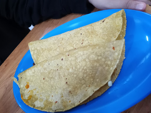Read moreSolo probé tres cosas: Pambazo de papa con chorizo: le falta poner más en el comal la parte interior del pan para que no se desbarate cuando lo comes, el chorizo y la papa están como molidos y mezclados, o sea es puré rojo. No me gustó. La gordita de suadero: cualquier gordita chilanga se prepara la masa y el relleno al mismo tiempo, la de aquí está toda delgada, después la abren y le meten el relleno. No me gustó. Quesadilla frita de champiñones con queso: ES UNA DELICIA!! Está si es chilanga al 100!!!, además tiene ingredientes de mayor calidad que la gordita flaca y que el pambazo. Definitivamente regresaré a probar todas las quesadillas por que los guisados si se ven buenos. Se agradece muchísimo unas quesadillas fritas así de ricas en la zona. Ah las...