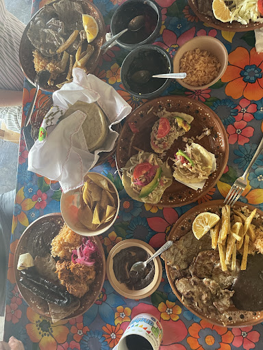 So delicious, I had the conchinita pibil and my wife had breakfast for lunch. Both plates came with rice and beans but the black beans are pureed. They gave us corn tortillas with butter and guacamole with chips to start.
