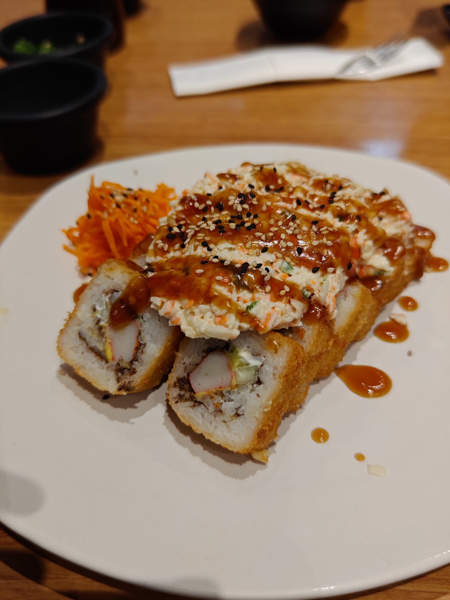 Read moreUn restaurante riquisimo y de precios bastante accesibles, la segunda vez que fui a mi acompañante le salió un pelo dentro de un temaki. Fuera de eso, la comida es muy muy rica, a excepción que de bebidas naturales únicamente tienen té helado de la casa y es malisimo, jamas habia probado uno tan malo. Deberian tener mas variedad en bebidas aparte de refrescos 😐 Mi platillo favorito es el pollo al ostion y el bombazo de pollo. El pollo agridulce no lo recomiendo ya que el arroz solo esta ahogado en la salsa agridulce que no es tam buena, sabe muy ácida, pero el pollito y los...
