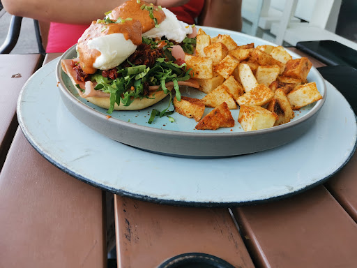 Complicada la descripción, empezaré por lo malo... El lugar estaba lleno, la falta de organización al ingreso era evidente, entre las mesas no hay sana distancia, el lugar estaba a tope. Afortunadamente estuvimos en la parte de afuera del lugar y pasaron más de 15 minutos sin que nos llevarán la carta, cerca de 45 minutos esperamos por el desayuno, pedimos café americano el cual también le llevó al menos 10 minutos en llegar y para que nuevamente llenarán la taza, mejor ni hablamos. Obviamente no cuentan con la capacidad instalada suficiente para atender el lugar en un cupo máximo, ni en cocina, ni en atención.