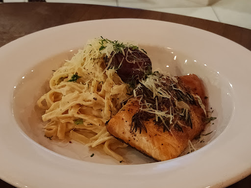 The food is tasty, period. I had the honey glazed salmon and filet mignon paired with wine, can't recalled which one but it was great. My family ordered everything from salads, lasagna to pizza and everyone was satisfied, they have good food.