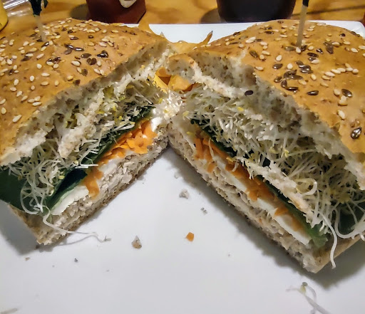 Read moreI came to the restaurant with the anticipation of a great veggie burger. Ultimately, that is not what I ordered. Things were hit and miss. Started with the entrada of atun, which looked great on the menu photo...a nice slice of tuna on a flat bread. What we received was bits of tuna on a cracker...not quitexthe same thing. I ordered the hamberguesa de pollo con tecino. Not a chicken burger, but a thin chicken breast. It was tasty, thanks to the bacon and cucumber. It cdme with veggie chips, which were stale.