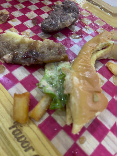 Read moreHamburguesa decepcionante, la carne carece totalmente de sabor y al parecer su concepto de buena hamburguesa se limita a amontonar condimentos sin ton ni son, el pan se despedaza con facilidad lo que hace que la tarea de comerla sea casi un imposible y tengas que recoger y comer por pedazos la hamburguesa, si es de buen tamaño y los precios son de justos para arriba pero por todo lo anterior no lo recomendaría si buscas una buena hamburguesa donde la carne sea la protagonista, pero si lo que buscas son hamburguesas grandes con un montón de cosas para hacerla ver “apetitosa” pues......