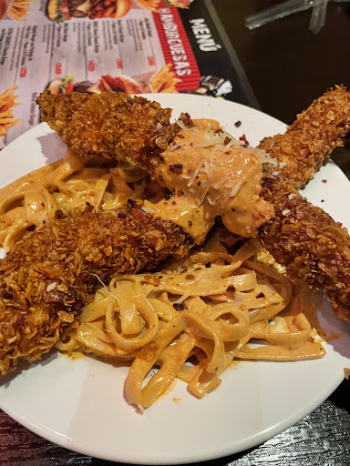 Read moreExcelente lugar para pasar el rato con tu familia. El paso mes concurrí dos veces en la misma sucursal, el trato fue amable y atento. El precio es accesible si tomas uno de los combos que incluyen plato fuerte, bebida y postre. La segunda vez que volví tomé la opción de elegir a la carta, sin combo y la diferencia de precio es mucho más alta por lo que recomiendo tomar el combo, no se arrepentirán. Las instalaciones están muy bien cuidadas, hay área de juegos infantiles por lo que hace más ameno la velada para los padres. La hamburguesa con tiras es muy deliciosa, al igual que él fetuchini Alfredo o chipotle. Sin duda la estrella de los platillos son las tiras, lo crunchy y el sabor es sumamente delicioso. Las bebidas alcohólicas es muy buenas, y las bebidas de aguas frescas son refil por lo que vale la pena comprar una por cada persona. Antes que se me olvide, recomiendo 100% las papas a la francesa que vienen acompañadas con la hamburguesa, el sazón...