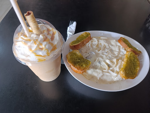 Read moreYa son varias veces que he comprado en esta cafetería y hay algunas cosas por las cuales no creo regresar: 1- Hace como un mes y medio que fui había una mesera que se me hace muy pesada, siempre tiene una cara de que no quiere trabajar además de que su atención deja mucho que desear, está vez que fui Vi que no estaba pero la de cabello corto rizado es igualita que a ella. 2- Los dedos de queso se me hace una estafa, están súper chicos y trae poquito. 3- La orden de tenders la verdad tiene un sabor raros ya que estaba muy salado. Los frappes y cafés están regulares. 5- La pasta sería lo único que puedo decir que me gusto. 6- Algo que siempre hacen es que primero me dan la comida en vez de las "entradas" jajaja.