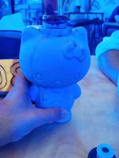 I had two of their mixed drink thingies which come in a little barrel looking jar with a lid and a straw and cost 70 pesos each. I had the mojito one which tasted like a mojito and had fresh mint in it but as far as I could tell it had zero alcohol in it. I got a second one which was kind of a red wine thing and it also seemed to have zero alcohol in it so if I went there again I'd probably just have a beer.