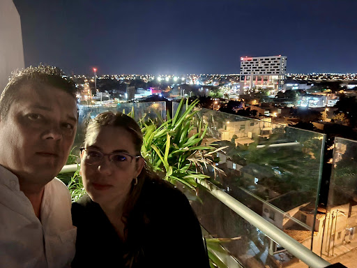 Una excelente opción para ir por una cenita y tener una vista panorámica! El lugar se encuentra dentro del Hotel El Mesón de la Luna, exactamente en el 6to piso, saliendo aun hay que subir 2 pisos más por las escaleras y llegar a una terraza descubierta en su totalidad donde se encuentra el rooftop. En la distribución de las mesas predominan las mesas altas para poder apreciar la vista de la ciudad en su parte Noroeste es decir todo lo que esta por Altabrisa. La atención en este caso fue atraves de reservacion previamente pagada y al llegar cotejaron el nombre y la reservación, el espacio estaba totalmente reservado. Nuestra cena consistió en un menú que previamente te envían y estaba dividido en 4 tiempos incluido el postre y una bebida de cortesía. La atención de los meseros y Hostess es muy buena y te hacen recomendaciones por si tienes duda en que elegir. La comida superó mis expectativas en su totalidad! A pesar de ser un menú restringido las opciones estuvieron deliciosas e incluso hubo quien grababa el proceso al servir un platillo. El ambiente es agradable sin embargo en esta ocasión el dueto que estaba amenizando la noche se encontraba al inicio del lugar y por la distribución de la planta en rectángulo las mesas del fondo no escuchaban nada, esa es un área de oportunidad para mejorar al igual que la decoración la cual era inexistente, un juego de luces cálidas ayudaría mucho en verdad al lugar y a que la experiencia sea más agradable. La parte que no me gustó fue que la cena solamente era para parejas o grupos en número par, es decir si querías ir y son 3 personas obligadamente tenias que pagar para 4 personas por disposición en la gerencia. La realidad es que íbamos a ir 5 personas pero ante esta restricción solamente fuimos 2 para poder tener una opción objetiva del lugar y saber si valía la pena hacer la recomendación. Vale la pena regresar, solamente espero que ya no hayan...