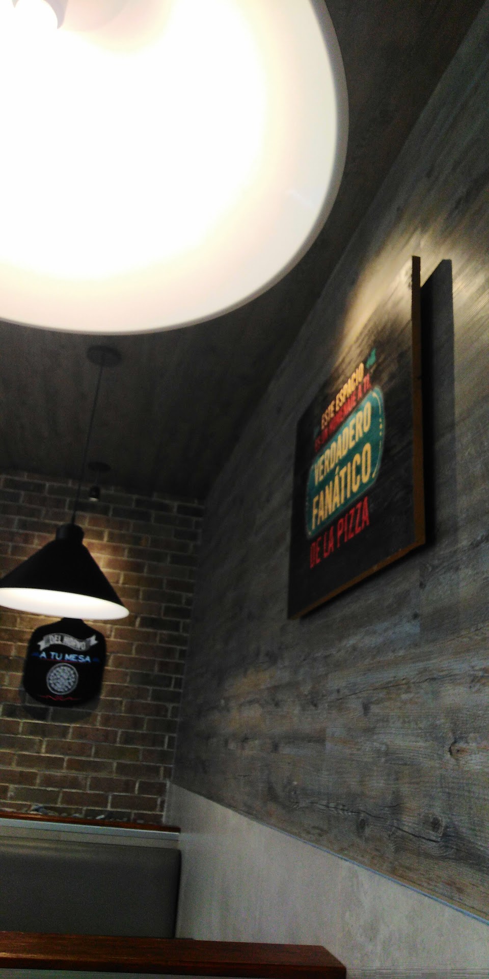 Tuve el placer de visitar esta sucursal de la franquicia. Y digo el placer, porque la relación precio- calidad, es la misma Excelente. Tanto en la limpieza, el trato, atención al cliente, promociones, menú, el orden en el restaurante, su decoración con balance entre lo industrial y lo informal, entre lo íntimo y lo familiar. La atención a domicilio. Y lo más importante para mí, ¡el sabor! Desde el tono crujiente , justo del horneado, aroma, textura de los ingredientes, ( pedí de pepperoni, jamón y champiñones). Te invito a pasar con pareja, amigos, familia o...,¡Solo!