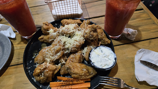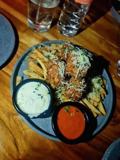 Fui el fin de semana pasado y siento que descubrí una joya en la ciudad. Comenzare describiendo el lugar, el cual es totalmente ameno, con terraza no muy grande pero suficiente para ir en grupos de amigos ya que cuenta con mesas para 4 personas y otras más largas como para 6. Tienen música a un volumen que te permite disfrutarla pero también platicar sin necesidad de gritar, me encantó la distribución de las mesas ya que los espacios son bastante amplios que difícilmente chocarás con otras personas o le será complicado al mesero llegar a tomar tu orden. En cuanto al servicio, 5/5 fueron amables desde que entramos al lugar dándonos la bienvenida y asignándonos la mesa. Apenas nos sentamos, nos entregaron el menú, le dimos una leída rápida y cuando regresó el mesero antes de tomarnos la orden, nos preguntó si queríamos que nos explique el menú. Algo que aprecio bastante ya que nos fue más fácil elegir nuestra combinación de boneless. Pasando a la comida, también tienen un 5/5 porque ¡qué ricos boneless! Elegimos de bbq rellenos con philadelphia y con aderezo a parte de blue cheese. Te los sirven con una cama de papas a la francesa y uff. De solo recordar, se me hace agua la boca jaja. De bebidas elegí probar la Gommy-chelada de mango qué también estuvo muy rica, ya que soy fan del chamoy y las micheladas. Sin duda me quede con ganas de probar más de las opciones de comida que tienen y seguramente regresaré para seguir y darle la vuelta completa...