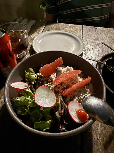 Read moreThis place is an amazing discovery. Dim down speakeasy and a gorgeous backyard, that smells like a fireplace (you will smell too lol) cause of the natural fire going on in the kitchen. So lovely! The ambiance is unique and I do believe this place will get a Michelin star one day. Pork belly taco - the best I have ever tried. Meat was grilled to perfection. Crispy, tender, with a melting fat pieces, just amazing. Shrimp taco was delicious. Unique take on beer batter aka tempura paired with pickled cabbage. A wonderfully balanced and one of a kind taste. 1 beef tako was out of stock, but hear me out. This place orders Unique ingredients that are not easily replaceable, so I totally get that. Pizza was a MAJOR disappointment. Tough dough covered with oversalted cheese that would have been amazing raw. Didn't feel the tomato salsa. Few leafy greens. But whatever, I am not in Italy to complain, thus definitely 5 stars for the experience and some mindblowing food. P.s. posting the newest menu, some price...