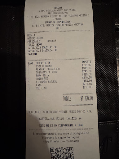 Read moreOverall everything started well. The environment was great, food was good, waiters were attentive and polite and great knowledge about the food. Later in the night one of the waiters took my wife’s margarita glass although she wasn’t done and there was still plenty left. When we let him know, he said he will look into it and we didn’t see him the rest of the night, they told him not to come back out. The other waiter came out and he was very understanding of the situation and he offered us an aperitif. So, my wife ordered an Averna. As I was paying the bill I realized that he charged us for the aperitif. He asked if everything was good and I said yes except that I don’t believe we should have been charged for the complementary drink he offered. A man behind the waiter introduced himself as the general manager and with a passive smirk on his face he said bluntly that if we ordered the drink it had to be charged. I ended up paying the bill without another comment and they didn’t feel comfortable enough to ask for a tip. I feel bad for the waiters because its run poorly by the managers. I have friends who live in Merida who have warned me about this. I won’t give this place...