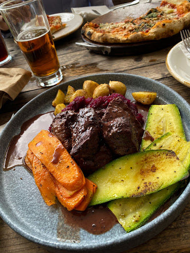 Read moreLa comida aquí es muy buena, la pizza acorde al tipo de lugar, pasta buena porción así como sabor y carnes bien, como sé pidió (aunque este último podría mejorar). El lugar es cómodo, agradable y comer en la parte de afuera mejora la experiencia, las mesas y mobiliario bastante vintage y agradable a vista. Quizás mejoraría: Fuimos para 10 de mayo y nos preguntaron si era primera vez (dijimos que si) y reservamos antes por que nos intereso el lugar, fue después que nos apareció su anuncio donde decía que mamá come gratis y nadie nos dijo nada, no sé si fue comunicación pero hubiera sido buen detalle para la mami que los visito ya que fue ese el motivo. Lo que dice que quizás falta comunicación con el equipo. Por otro lado, para ser una fecha alta habia poco personal, cuando llegamos eran pocas mesas y después se llenó y generó que nuestro mesero dejara de tener atención lo cual es razonable a cierto punto pero si tener que cazarlo para pedir algo llega a incomodar. No obstante el mesero muy amable y cordial en todo momento, sin...