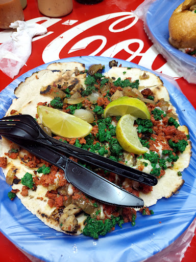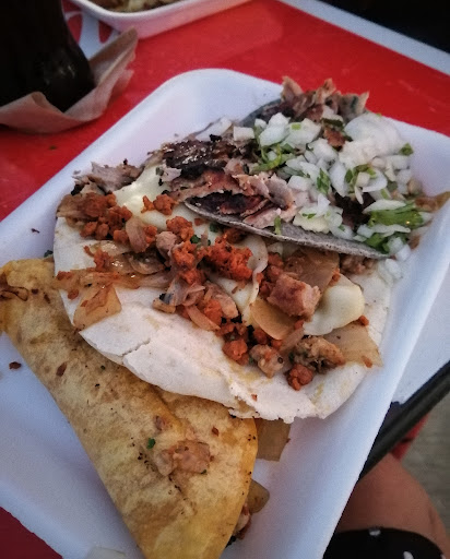 Read moreEl sabor de los tacos es bueno, me agrado. El lugar es en un estacionamiento, por lo que está a la intemperie(solo un toldo) y entre mesas no se notaba barrido por lo que hay bastante basura. En ese mismo estacionamiento te puedes quedar. La atención en general fue buena y eficiente, llegamos y a los 5 minutos ya habían atendido sin embargo para ser las 8pm ya no tenían varios platillos. Lo único que nos sorprendió bastante fue el costo de los tacos pues por 2 tacos, un burrito y un refresco fueron $230 y no es que estuvieran gigantes estos, siento que es caro para lo que ofrecen. Leí en los comentarios que a alguien le malcobraron, espero no sea mi caso así que daré una 2da oportunidad para ver costos pues no son especificados en la carta....