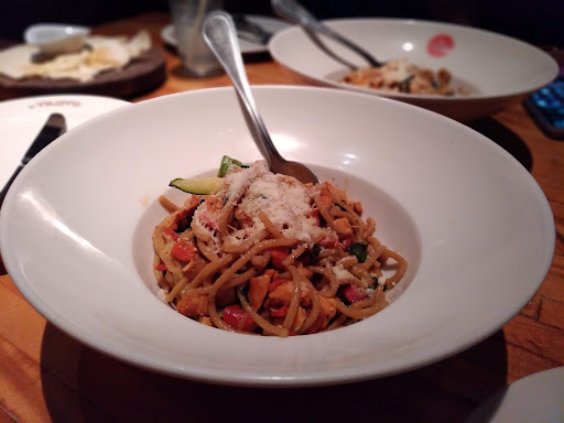 What a disappointment. We arrived to this lovely establishment and all the food being served as well as drinks looked delicious. We ordered a pizza and two pastas as well as drinks. The best thing about the meal was the strawberry lemonada. The gnocchi pomodoro had large chunks of uncooked tomato and was over cooked, making it sticky. The scampi sauce was so heavy it overpowered the whole dish which was unfortunate as the black pasta was a creative addition. The artesanal pizza habanero was bland and too heavy on the cheese. Most of us left most of our meal. I will say they are trying, everything was well plated and presented beautifully so it was sad to be disappointed in the lack of execution of flavors… and for the prices I...