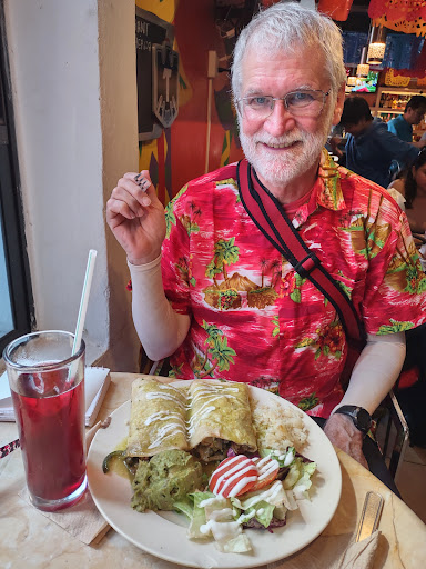 Great food, fun atmosphere, friendly service, good prices, clean, air conditioning Las Vigas was recommended to us by other hotel guests, and we’re so glad we gave them a try for Sunday lunch. Now it’s on the second floor on a side street not too far from the main square in Centro, but it’s worth the hunt. Look for the colorful staircase and head on up. The restaurant is pretty big, so there’s room for everyone. We took a table by the window to watch the pedestrians pass by. Our server was friendly and patient. The menu is extensive. I had a fish meal while my husband had a vegetarian burrito – both portions were hearty and tasty at very reasonable prices. Everything seemed clean. They have a full bar, but we opted for delicious Jamaica (hibiscus) tea, our go-to drink in Merida. It was a festive atmosphere with local families and travelers enjoying the day. Go to Las Vigas, you’ll be glad you did!