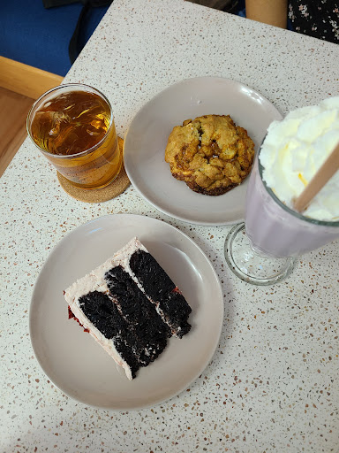 Read moreVEGAN OPTIONS! Such a cute relaxing clean, modern boutique style Café with a cute indoor neon sign to take a fun picture under. They also have beautiful outdoor tropical oasis type seating area if you prefer to be outside. The staff is so kind and very accommodating service. Their pastries are so natural and filled with organic flavor and based on the season i got Mrs Pumpkin and it was so dang good! Its rich with a perfect balance of salt bits so that the sweetness is not too much. I got the delicious chilequiles and my partner got the tomato hummus sandwich called Chica Chique, which he loved and got surprisingly full from being that it was all veggie. Also got a fruit drink Verde Naranja (taste like a beet celery green juice, not sweet but tasty), Vanilla latte and I got a ice smoothie Baya Arbol (taste like apple...