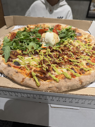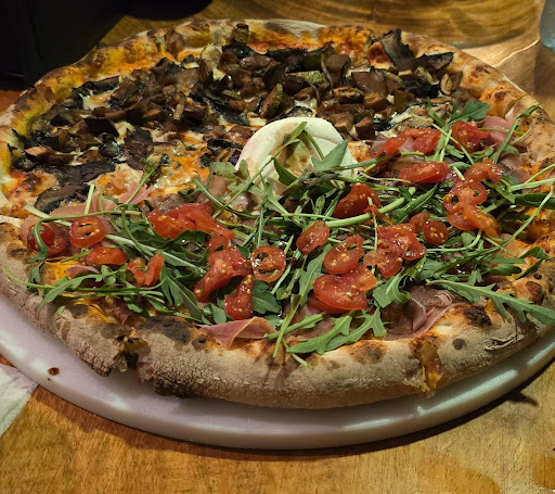 Con un gran antojo de pizza venimos al lugar donde según las opciones contaba con la mejor y nuestra experiencia no pudo estar en más desacuerdo. Tardaron poco más de 40 min en servirnos 2 pizzas y una pasta, mientras veíamos como las que eran para llevar salían una tras otra. En la parte del horno estaba un solo chico. Una de las pizzas era mitad vegetariana y mitad serrano con burrata…Los vegetales no estaban bien cocidos y el serrano estaba malo, no era de buena calidad y por lk tabto no sabía. También la pizza estaba algo tibia a pesar de estar recién salida del horno. En ningún momento se disculparon por la demora ni nos ofrecieron alguna cosa para picar mientras. Tampoco nosotros dijimos nada, pues realmente esperábamos que la espera lo valiera. Quizá las pizzas van saliendo en orden de cómo se recibe el pedido sin importar si consumes o no en el local, pero si es asi, lo correcto es comentarte desde un incio y ya tú decides si esperas o no. la espera fue tediosa pues el lugar no es acogedor, no hay música, no hay nada que picar mientras, simplemente nos dejaron ahi olvidados. No se si volvamos a consumirlas, pero de hacerlo, definitivamente no será en su local. Lástima que no supiera...