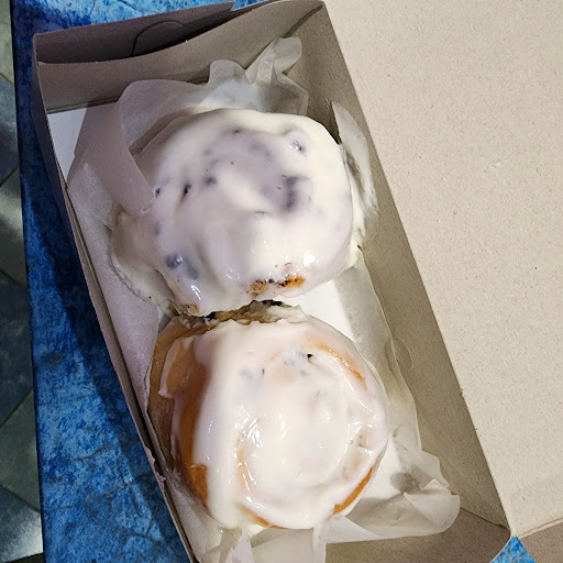 Great price for a great product. We came around 6pm and there was 6 flavors to choose from, not surprised it being this late in the day. Amount of frosting 8s fine, if you find it's too much then take some off. Staff was nice, quick and friendly. I'm very picky when it comes to my cinnamon buns and these were fantastic. I'm not a big Sugar eater but these were amazing. Wish I had a photo but the made it from the front door, into my car and disappeared into my stomach in less than 5 mins. Great product,...