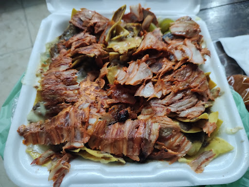 It has affordable tacos, a big selection made to order, great margaritas and it’s open late. The pastor is tasty (I’m no expert) but it’s fresh and always flavorful. We like the nachos with pastor and the mega papa if you’re going for something other than tacos! We’ve tried the quesadillas, French fries, tacos arrechera. And the queso chicharron is also a fun experience though once is likely enough!