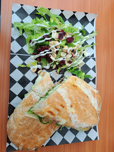 Read moreI ordered the chicken pesto panini. It was a good size and well-seasoned. I would have liked it to come with chips or fríes in additional to the salad that came with it because the meal could have been more balanced with a salty side. My wife's poke bowl was pretty good. The portion was generous. We ate here with our baby and it was really easy to move around with the stroller so it maybe a good choice for you if you're eating...