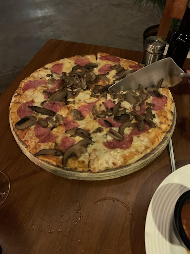Read moreEs un buen lugar para ir con amigos, o con pareja, el servicio es bueno, y la comida también, atienden súper rápido(ya que estás en la mesa). Definitivamente tienes que probar alguna entrada, y las pizzas, son con ingredientes súper frescos. También recomiendo, que si van a pedir algo con vino, siempre es mejor pedir la botella entera 😉, sale más barato, claro. Las porciones están bien servidas, así que tampoco es necesario pedir tanto. Nosotros pedimos una pizza mediana y un pan con queso y champiñones, fue más que suficiente para 2 pax. Puedes ver tras bambalinas cómo estiran la masa, y los ingredientes se perciben de buena calidad, el dip de tomate que viene con el pan c/queso...
