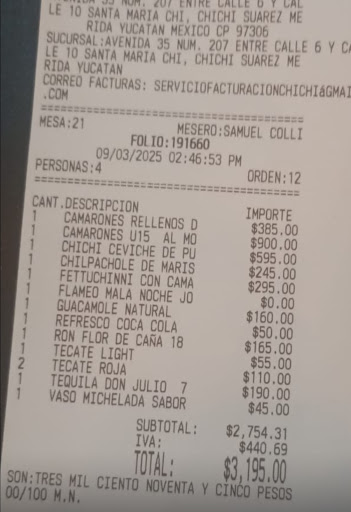 Overall, while the food at Los Mariscos de Chichí is excellent and the ambiance is nice, the aggressive tipping expectations and unfair exchange rate policy take away from the overall experience. I would still recommend the restaurant for its cuisine, but with caution and awareness regarding payment and...