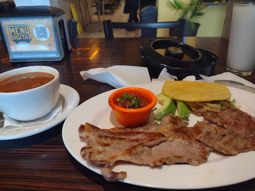 Read moreUn lugar actualmente clásico para las familias que desean pasar un rato muy agradable, cuenta con un área infantil que está dividida entre la zona de bebé con colchonetas y la zona de niños más grandes con dos pisos para que se entretengan y diviertan, pinta caritas, escritorio de colorear y zona de "Gaming" con un Xbox y pantalla. Adicionalmente una pantalla donde se proyectan películas infantiles. En cuanto al menú, es variado pero con especialidad en Trompos de pastor y diversas carnes, refrescos rellenables, café y hasta cócteles y cervezas. Ahora el restaurante abre sábados y domingos por las mañanas para disfrutar de desayunos clásicos mexicanos. La atención de los meseros es muy buena si no hay muchísima gente de lo contrario por momentos se saturan y puede llegar el momento en el que no le hacen caso a los comensales pues pasan para atender algún pedido talvez retrasado. Cuenta con pasillos principales en los que se puede pasar con silla de ruedas y también tiene pasillos un poco más estrechos que sirven para posicionarse en la mesa asignada, la entrada tiene rampa de acceso para sillas de ruedas y el estacionamiento cuenta con área de estacionamiento para vehículos autorizados a estacionarse en sitio para personas con capacidades especiales. En días concurridos puede llegar a ser muy bullicioso al ser un lugar cerrado con aire acondicionado. Cabe mencionar que no es un lugar muy caro y acepta tarjeta de crédito o débito. Todo esto hace que le demos 4 estrellas y un poquito más. Un lugar al que puedes ir con la familia y con los peques para disfrutar de un rico almuerzo (o desayuno en el fin de semana). Espero que les haya servido esta...