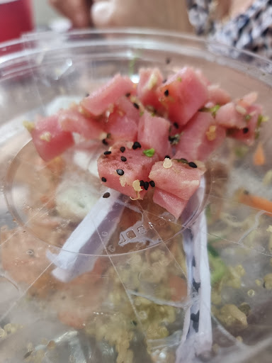 El platillo viene con una gran racion de los diferentes ingredientes que contiene (Edamames, zanahorias, Quinoa, Pepino, Arroz salteado [extraño para un bowl, pero estaba ok], y atún). El sazón está ok.