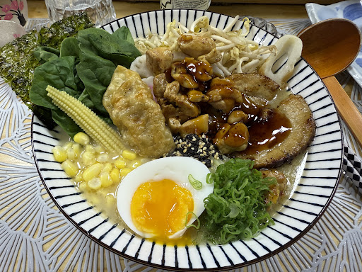 I’ve never felt the need to write a review until now, but I need to warn others to stay away so they can actually enjoy a meal elsewhere. I will start with the pros: the service staff and chefs seemed sweet, and I’m sure had we stayed longer they would’ve shown more fine service. The overall rating is not reflective of them. The restaurant is loud with random Japanese themed tchotchkes/knick knacks—not my cup of tea but hey, maybe the food would still be good. Alas, when my tonkotsu ramen came out, my life honestly flashed before my eyes lmao. Piles of teriyaki chicken alongside a chashu pork covered in sauce. A fried gyoza too? Along with spinach and corn. An insane amount of inauthentic toppings to try and mask the soggy noodles and flavorless broth. My tonkotsu broth literally just tasted of pepper, I was in shock. And the shio ramen tasted only of salt—maybe they could’ve mixed the broths to make something better. I grew up learning to not waste food, so I felt very embarrassed to leave all that in the bowl but I truly couldn’t bring myself to have another bite. PLEASE spare your stomach space and money and eat elsewhere. This is in no way authentic, and even as an inauthentic ramen place, it doesn’t even taste remotely good. The creator of these recipes and the one who buys fake reviews...