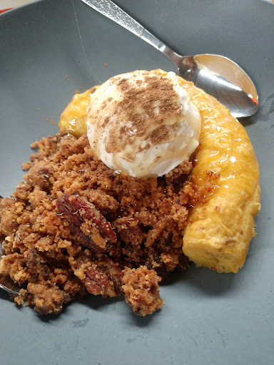 El lugar es amplio y muy estilo industrial, las sillas son un poco incómodas pero el mobiliario esta bien, todo muy nuevo. El servicio fue amable y al pendiente, te sirven rápido. Llegamos a las 2 y pasamos directo a escoger donde sentarnos pero por ahí de las 3:30 ya estaba lleno. El sándwich de brisket fue lo mejor, bien servido, el pan es suave, con buen sabor y no se desbarata, va acompañado de 3 salsas: mostaza rústica - ok, BBQ - rica y Habanero - me enchile. Los pepinos encurtidos tienen demasiado anís estrella para mí gusto por lo que es un hit and miss. El sándwich de panza de cerdo también muy rico excepto los cueritos, no estaban ni crujientes ni suaves, estaban francamente inmasticables ya que no se alcanza a formar como chicharrón pero tampoco se suavizan lo suficiente, afortunadamente el resto de la carne estaba suave y bien ahumada. Ambos sandwiches llevan una costra de queso que francamente es innecesaria porque no aporta nada de sabor. Pedimos una orden de papas que estaban su-pre-mas, perfectamente cocidas, sazonadas y acompañadas de una mayonesa espectacular, regresaría una y otra vez a comerlas. El agua de maracuyá está rica y tienen buenas opciones de sabores. De postre fue un plátano ahumado que la verdad falló, el plátano se sentía verde, amargoso y le faltó algo más de cocimiento o tal vez una pasada por la plancha, lo que lo salvo fue el crumble de nuez y mas o menos el mascarpone que no tenía tanto sabor pero daba textura. Ya vamos apuntando traer más amigos a probar el brisket y las papas me encantan estas opciones tan increíbles que están llegando a la col. Santa María la ribera.