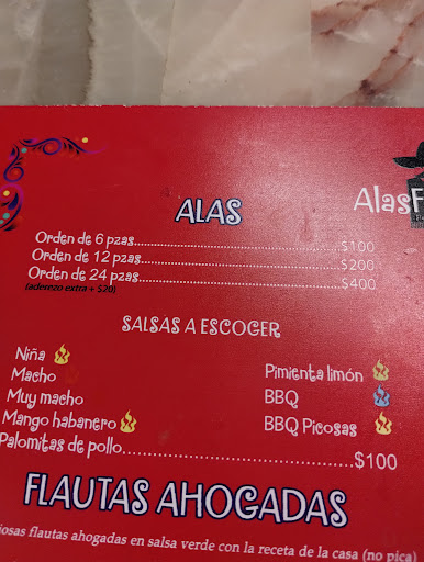 Read moreEste lugar me encanta para comer, las flautas son deliciosas y las alitas también son riquísimas, lo malo es que a veces está muy concurrido y los meseros no se dan a basto porque también limpian y cocinan, mínimo debes esperar 30-40 minutos, cuando no hay gente es muy rápido el servicio, no me gusta que solo vendan Boing de lata, coca pequeña deberían vender agua natural, no de sabor nadamás, me encanta la salsa habanera, no me gusta que pongan la tv en súper bajito música sería la mejor opción, otra observación el dueño tiene pésima atención al cliente. Una vez marqué y pregunté si era el número de las flautas porque quería hacer un pedido y tajantemente me dijo: "no" y me colgó ni me explicó ni nada, volví a llamar pero creo que a otro número y me contestó uno de sus empleados amablemente, dijo que si marcas al tel. que aparecía en Google se molesta, y si le molesta pues yo creo que debería modificarlo para no recibir llamadas o que eso explique. Debería subirles el sueldo mejor a sus empleados los explota bastante. Si fuera atendido por él la verdad no volvería nunca, pero soy su fiel clienta....