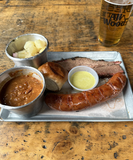 They claim Texas style BBQ, so I’ll evaluate it as such while recognizing it’s in CDMX. I’ve been to most of the Texas Monthly’s BBQ joints. Overall probably the closest to real TX brisket, but wouldn’t stand up to the top places in TX and honestly is below average. I ordered two single samplers with two meats each. I tried the brisket, the sausage, the pulled pork, and rib. The brisket was a single piece. It was dry and not much bark. Flavor was lacking. The sausage wasn’t up to TX standards. It was a full sausage, slightly finer grind, dry inside, and had a dried, tough casing. Not much smoke flavor. The rib was a huge disappointment. A single rib, it was crispy all over the outside as if it had been heated in an oven, not freshly sliced from a rack. It was tough and definitely needed more time in the smoker. The flavor was okay, just needed more slow cooking. The pulled pork was by far the best, though pork isn’t really a TX thing. Fortunately, I’m from Tennessee and TN BBQ (pulled pork and Memphis ribs) is my first love. This was a decent pile of pulled pork, enough for an average bun. Properly pulled (shredded ) with no gristle or fat. It was moderately moist, tender, and had mild smoke flavor. The table BBQ sauce was quite good and paired well with the brisket and the pulled pork. The green salsa on the tray was a wake up! I liked it, but not with the meats provided. It would be great on certain tacos, though. I tried several sides, also. The frijoles puercos were similar to TX charro beans but stewed much too long, to be almost a paste. Good flavor, though. The mac and cheese was very average and a bit of let down. Slightly runny and not much distinctive flavor. The potato salad seemed to be just cubed, boiled potatoes with some red onion slices. No real sauce or flavor, not mustard, not vinegar, hardly any pepper. It needs a real boost. The roll served with my first plate looked pleasing but was dry, hard as rock and inedible. It just broke into pieces. The one with my second plate was nice. Too small to make a suitable sandwich but a nice accompaniment (although plain white bread slices are the standard TX bread). Plates came with regular sliced dill pickles. All Wood has some great potential. Work on the brisket a bit, revamp the sausage or at least give it some flavor, smoke the ribs longer and lower temp, change NOTHING on the pulled pork. The potato salad needs a proper recipe. I might suggest dropping the onions from the potato salad and providing sliced raw onions with the pickles as is common across TX. Better scrutiny with the rolls. They have a nice craft beer list from other CDMX breweries besides Falling Piano next door. Service was good if a bit confused at times. Relaxed and enjoyable place to hang out. It may seem I’m beating on All Wood, but if you’re advertising Texas BBQ, you better be prepared to back it up. I’ll say it’s the closest to authentic TX brisket that I’ve tried in CDMX. I look forward to returning and trying other things on the menu. I would absolutely return just for the...